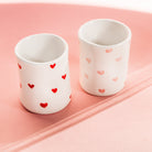 Χειροποίητα κεραμικά δοχεία με καρδιές, ζωγραφισμένα στο χέρι στην Ελλάδα — εξαιρετικά ως mini βάζο ή καλαθάκι για στυλό.