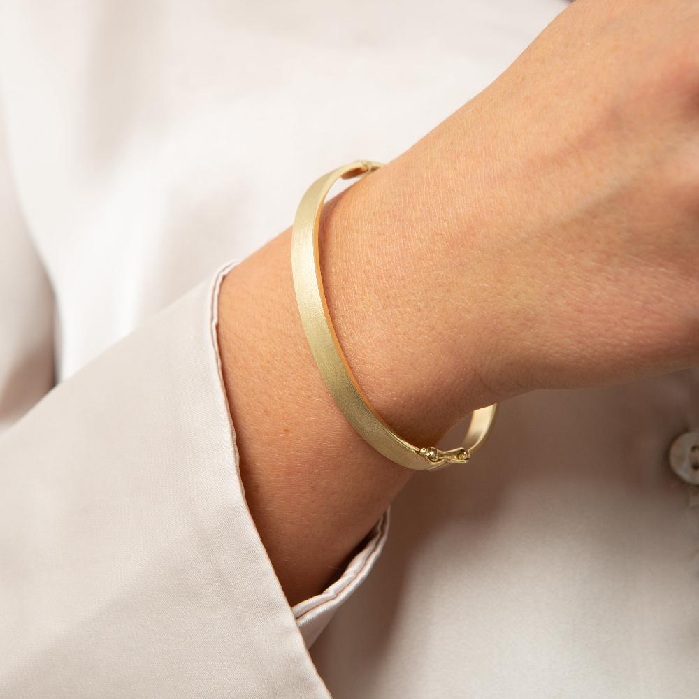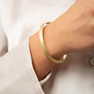 Αναδείξτε την κομψότητά σας με το βραχιόλι Golden Embrace, που αγκαλιάζει τον καρπό σας με μια κομψή, γυαλισμένη χρυσή επιφάνεια.