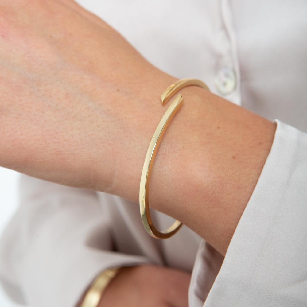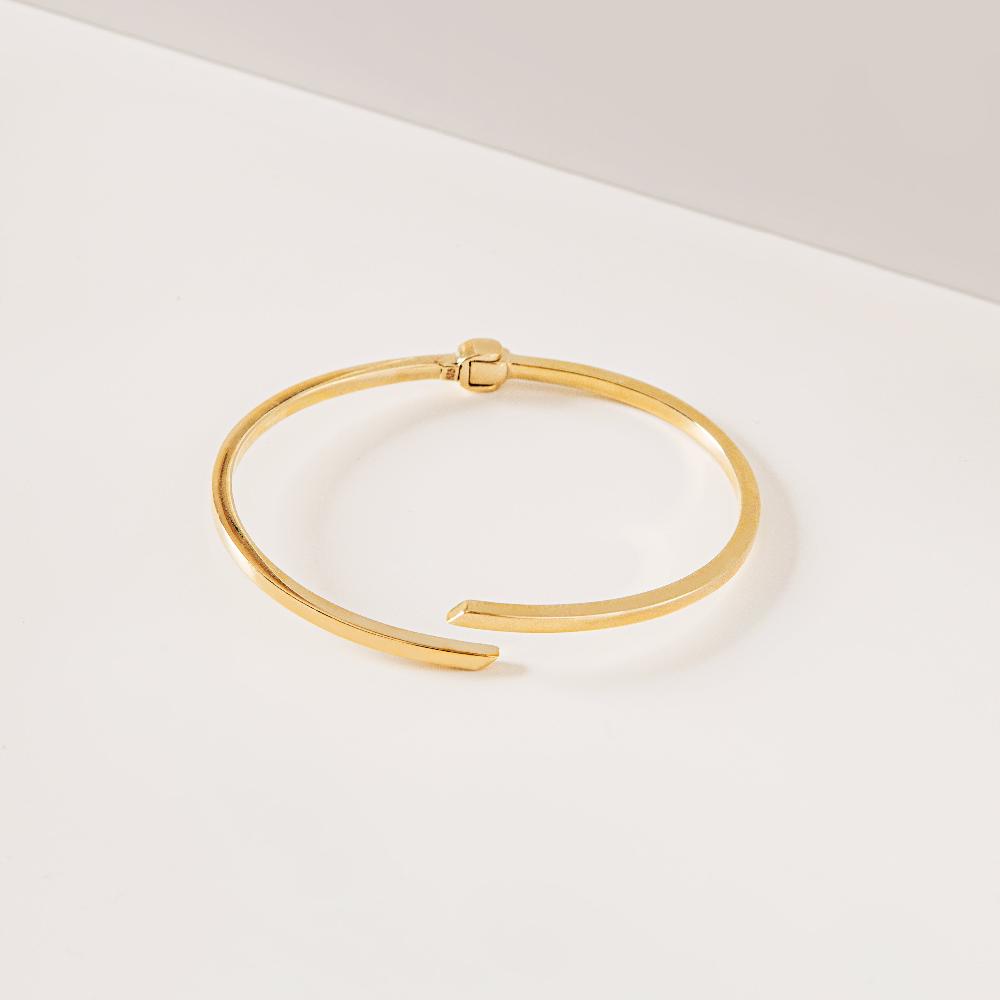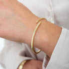 Ένα statement βραχιόλι από χρυσό 14Κ με λείο, γυαλιστερό φινίρισμα. Ισχυρή παρουσία, κομψή πολυτέλεια και διαχρονικός χαρακτήρας σε κάθε εμφάνιση.