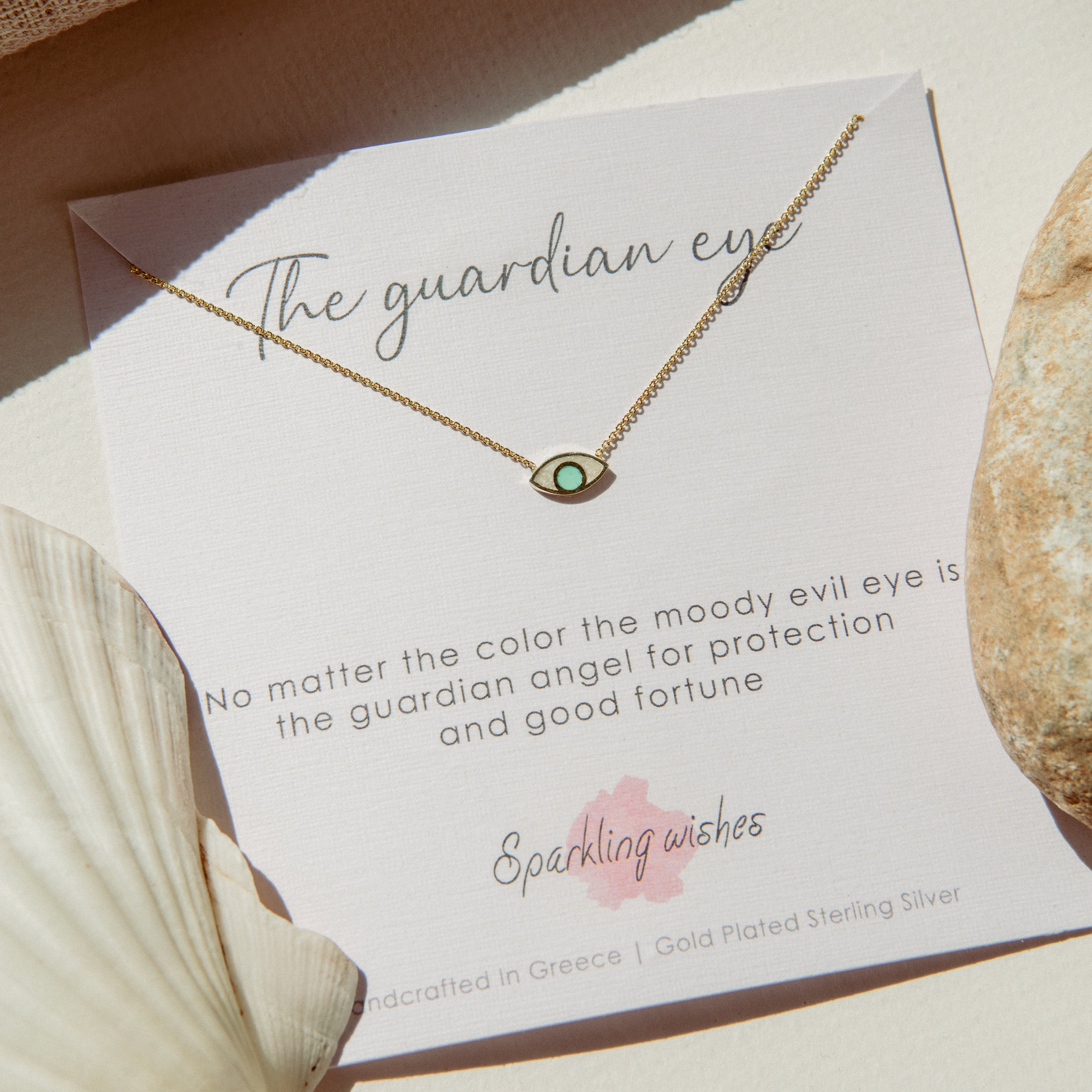 – Enamel evil eye charm (green center) for modern protection symbolism