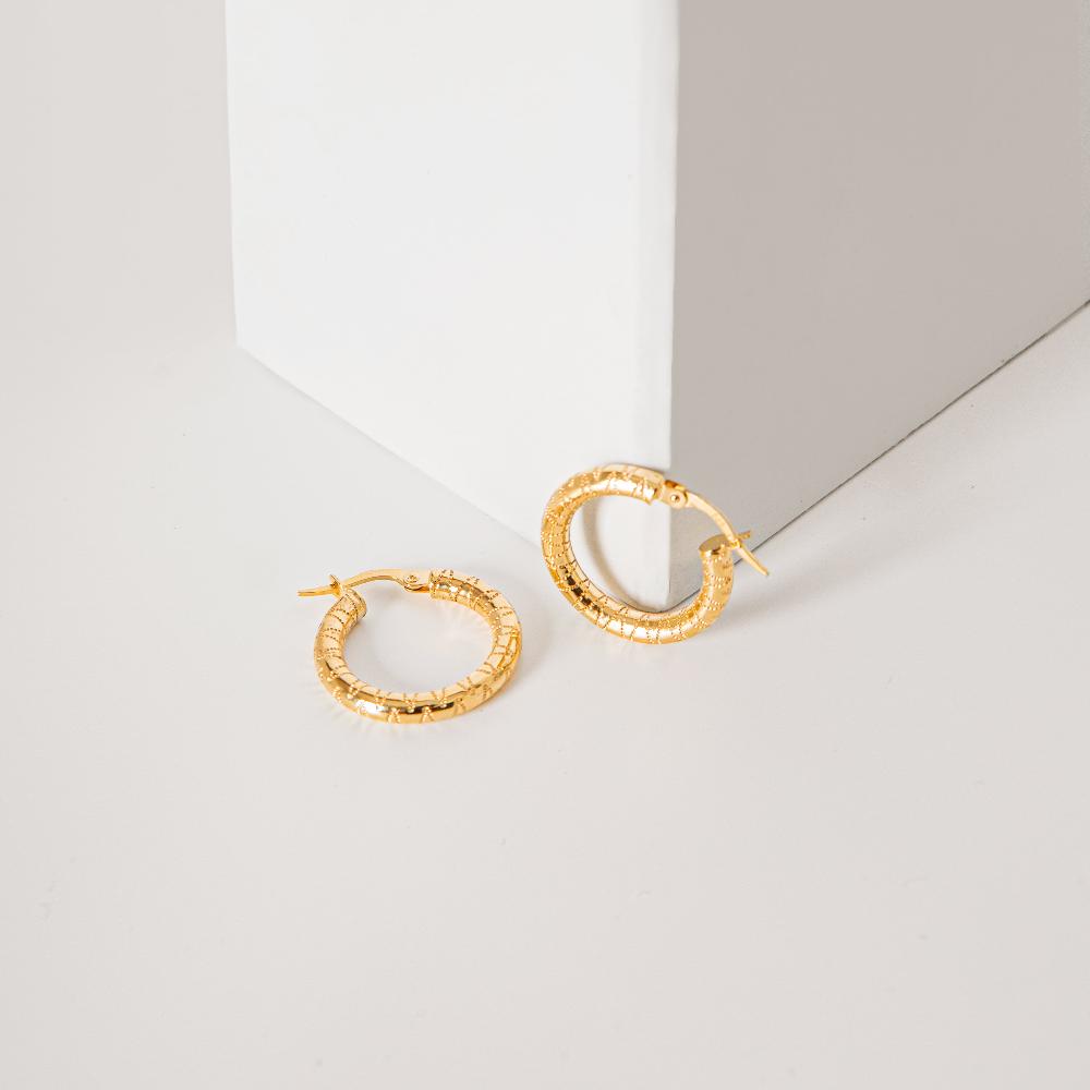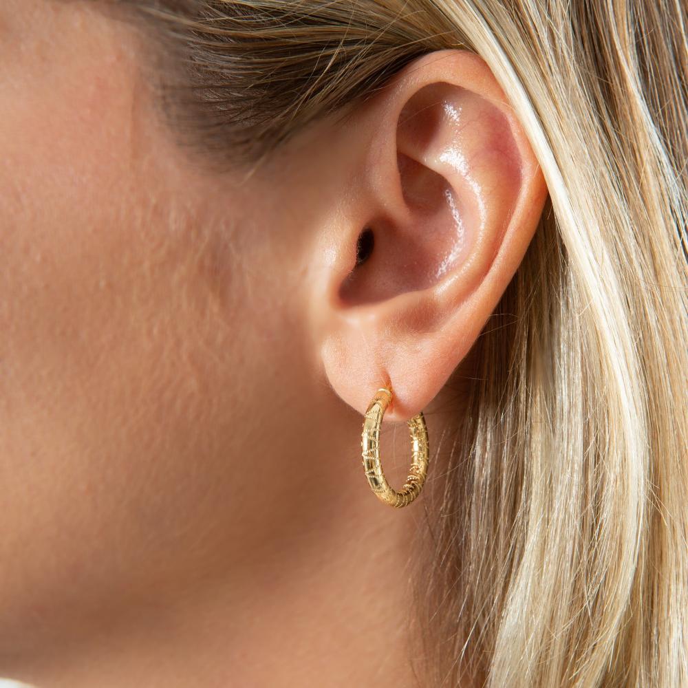 Κομψοί κρίκοι από χρυσό 14Κ, με λαμπερό φινίρισμα που θυμίζει τις πρώτες ακτίνες του ήλιου. Μοντέρνοι και διαχρονικοί, δίνουν μια φωτεινή πινελιά πολυτέλειας σε κάθε εμφάνιση.