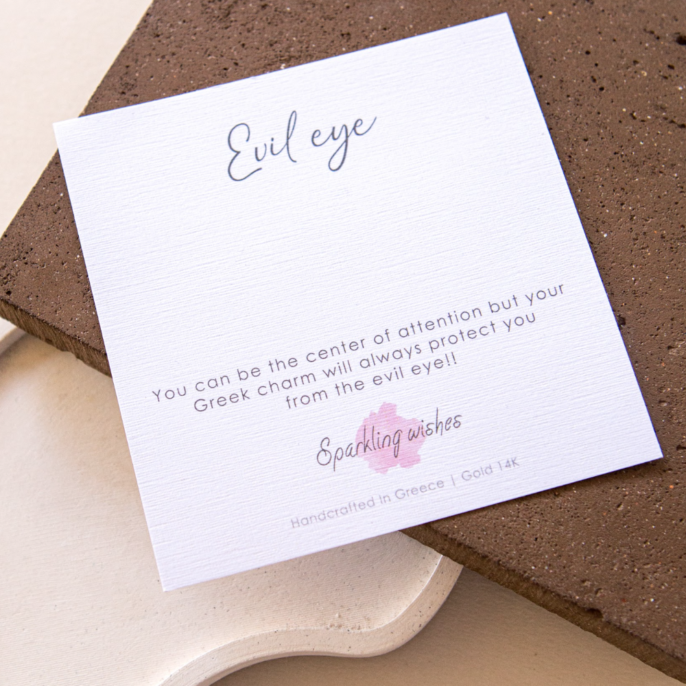 Αυτό το κολιέ διαθέτει μια λεπτή αλυσίδα με ένα μικρό, μινιμαλιστικό μενταγιόν με το μάτι. Στο κέντρο του ματιού είναι ένα μικρό διαμάντι που προσθέτει μια διακριτική λάμψη. Το σχέδιο του κακού ματιού, γνωστό για την απομάκρυνση της αρνητικής ενέργειας, συνδυάζει στυλ και νόημα, καθιστώντας αυτό το κολιέ ένα κομψό και συμβολικό αξεσουάρ ιδανικό για καθημερινή χρήση ή σε συνδυασμό με άλλα κοσμήματα.
