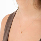 This is a minimalist, elegant necklace featuring a delicate chain that rests smoothly on the neck. The chain holds a small, sparkling diamond pendant at its center. The pendant is understated yet radiant, catching the light with its subtle brilliance. The simplicity of the design adds a timeless, refined touch, making it suitable for layering with other pieces as well as being suitable both casual and formal occasions.