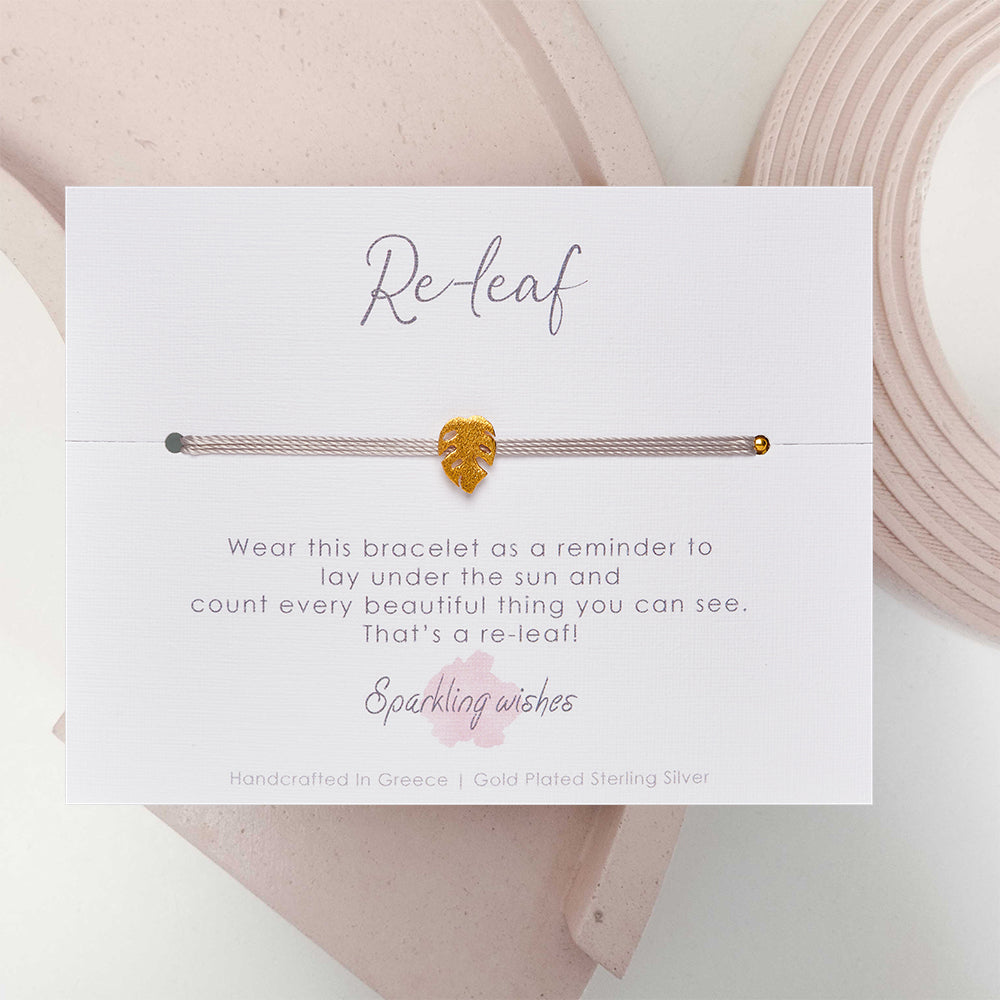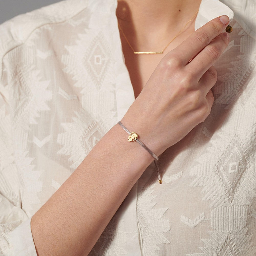 This bracelet features a detailed golden monstera leaf charm, celebrating the beauty of slow, sunny moments. Wear it as a gentle reminder to pause, look around, and appreciate every small wonder.