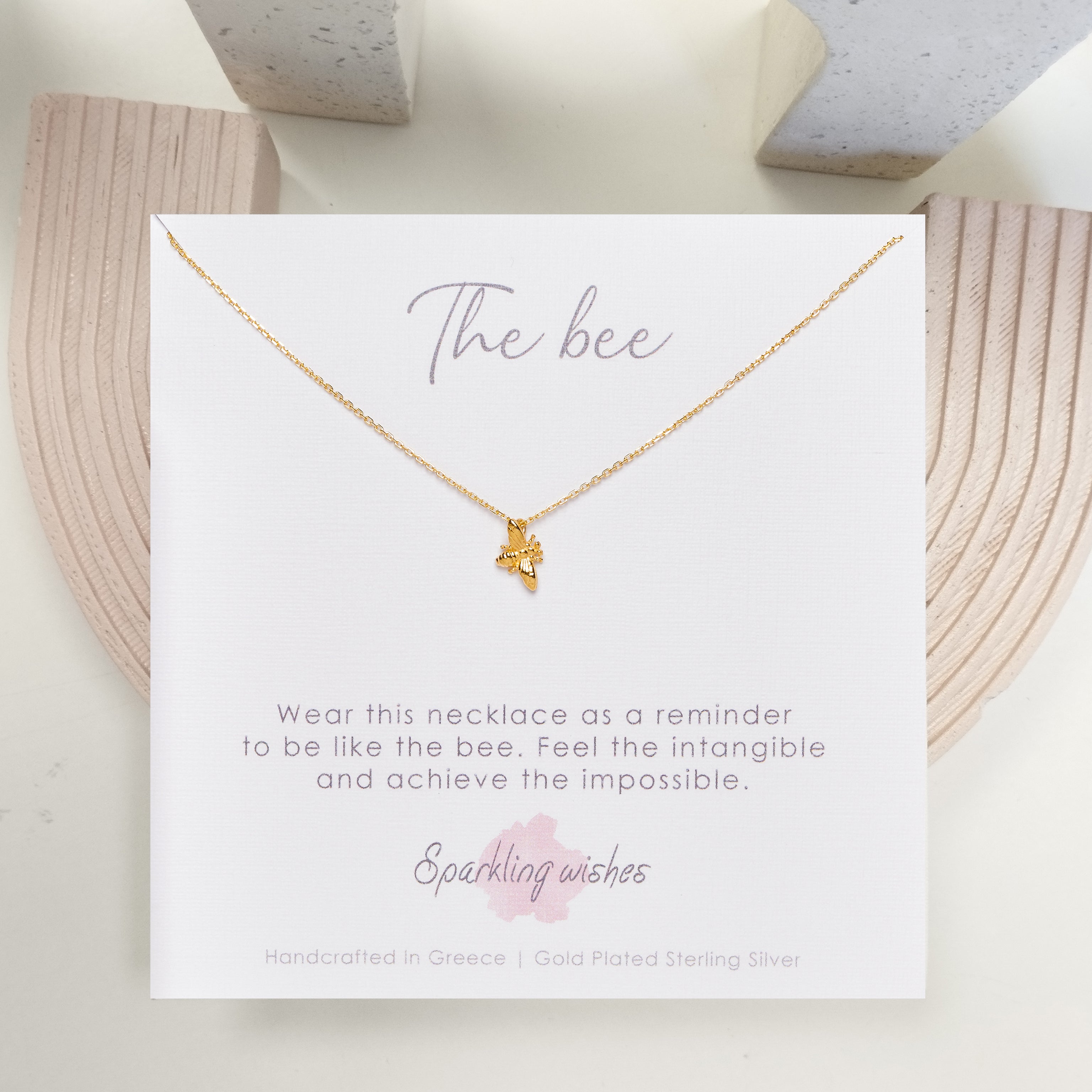 This necklace carries the spirit of the bee — a symbol of persistence, harmony, and the magic of achieving the impossible.